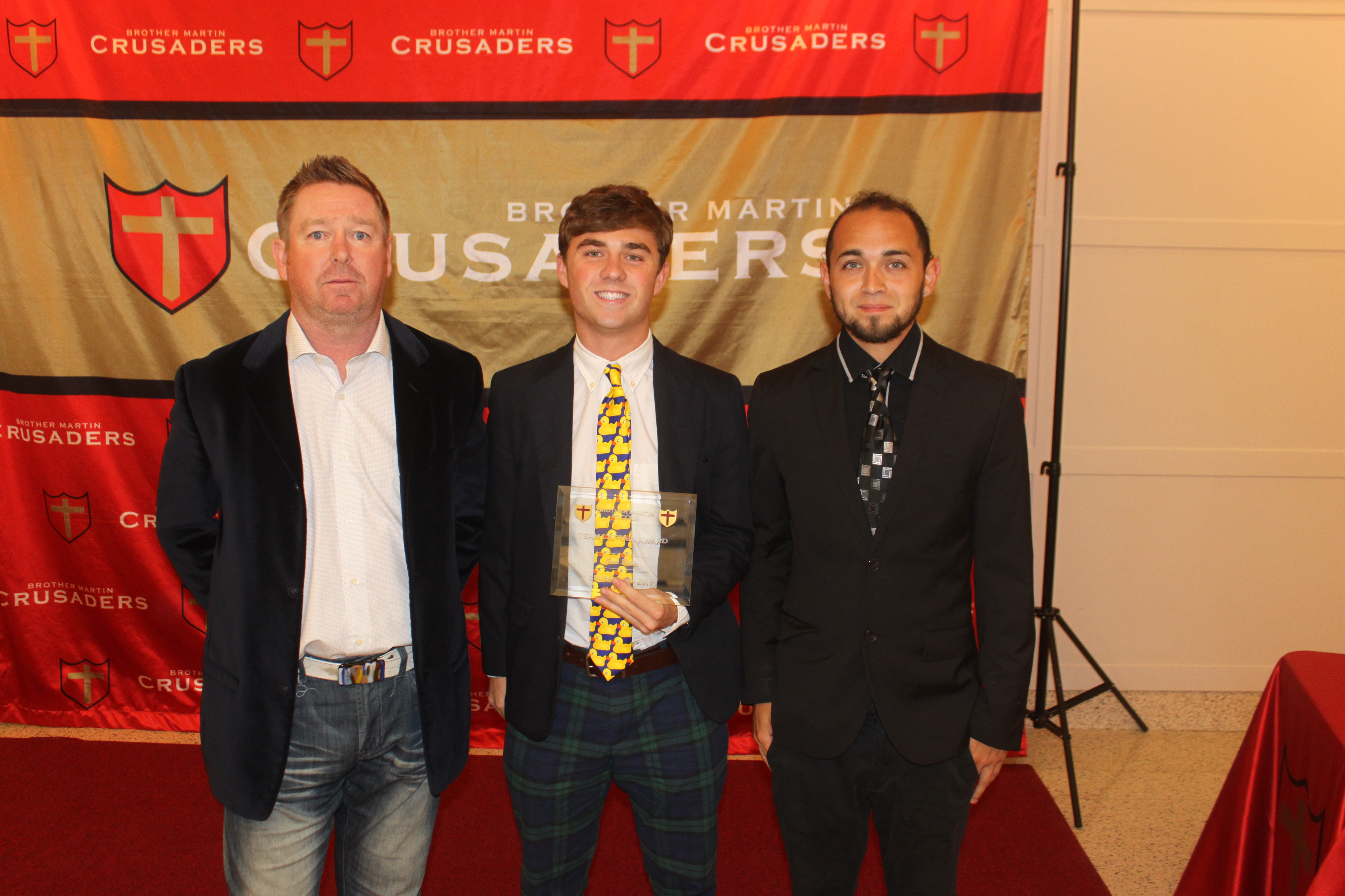 IMG_9589The Athletic Department hosted a convocation honoring the Crusader soccer program and the district 6-I varsity champions. Previously, the Crusaders had won the district title in 2014 and brought it back to Elysian Fields this season. Coaches Stephen McAnespie (varsity), Joesy Portillo (junior varsity), and Carlos Martinez (eighth grade) spoke on behalf of their respective teams, highlighting team accomplishments at the convocation. During season, the Crusaders made it all the way to the quarterfinal round, but were outscored by Catholic High. That was their 11th quarterfinal appearance in the past 12 seasons. Soccer head coach Stephen McAnespie also concluded the evening by recognizing varsity players receiving individual awards.