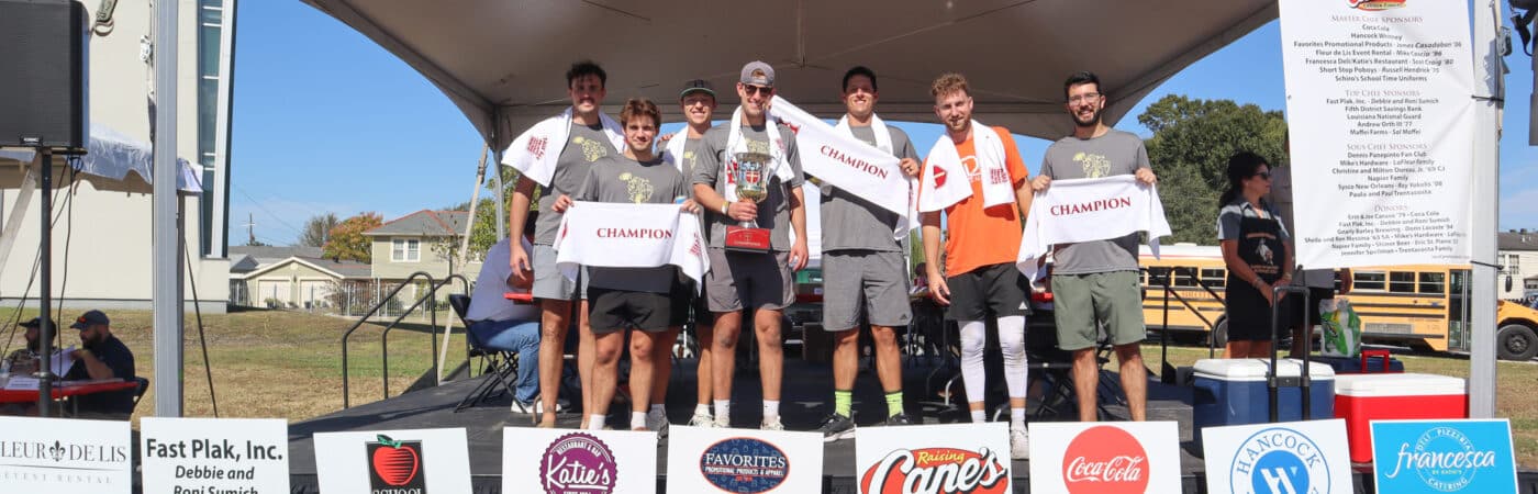 Steven Saucier ’89 and members of the Kenner Officials Association officiated the tournament. Team members, family, and the officials enjoyed the Crusader Cook-off after the tournament.