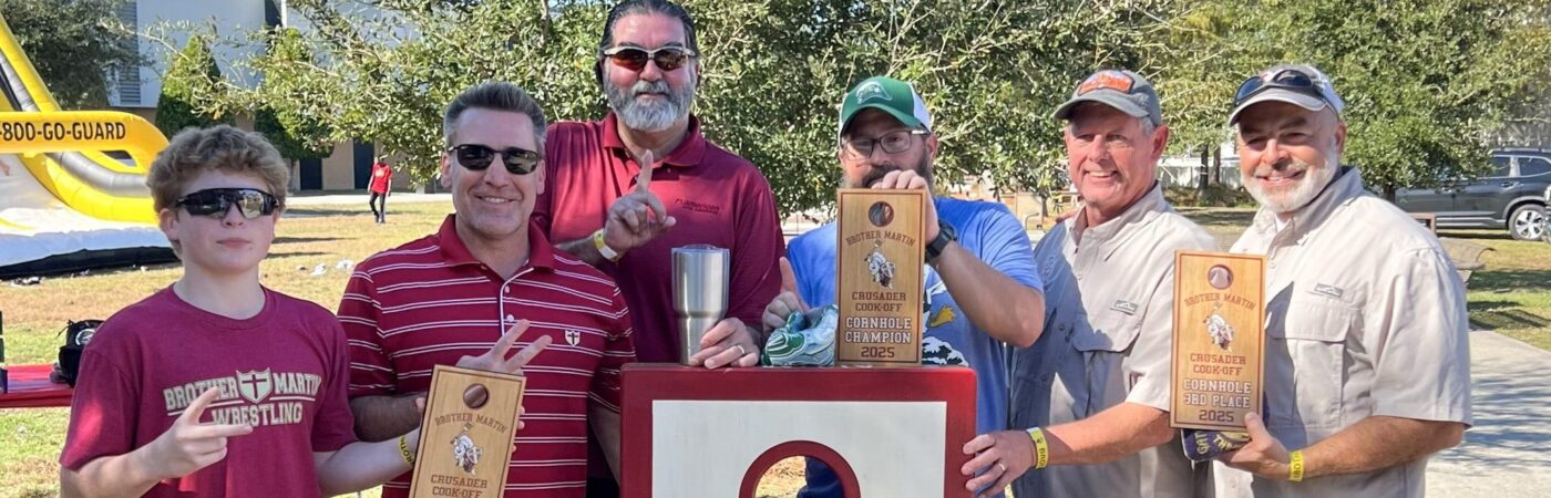 On Sunday, November 16th, Alumni, students, family, and friends gathered at the Crusader Cook-Off to participate in our Cornhole Tournament. The winning team was Not Today (Jared Gerarve and Jerry Caillouet '95), 2nd place went to Just Here for the Food (Dennis Gerarve III '28 and Kevin Mulligan '91), and 3rd place went to the Bayou Bengal Baggers (Dennis Gerarve II and Stephen Messonnier ’82).