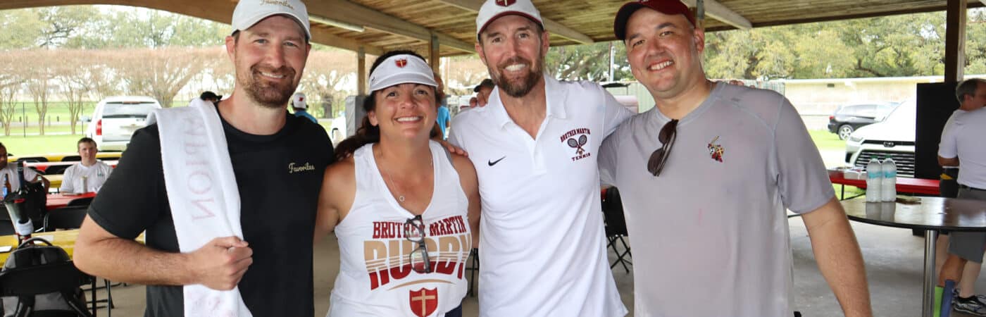 Brother Martin Tennis Coach, Lee MacAlester, directed the tournament, while DJ Pat Barbaro ’85 kept the crowd entertained. The Class of 1981 was back again, serving seafood paella, fish, crawfish bread, and snowballs! Guests also enjoyed a wide variety of food and dessert selections from our Food & Drink Sponsors, while The Ladies of the Shield served specialty drinks at the new, centrally located bar! Champions were awarded towels and champion champagne and posed for pictures.