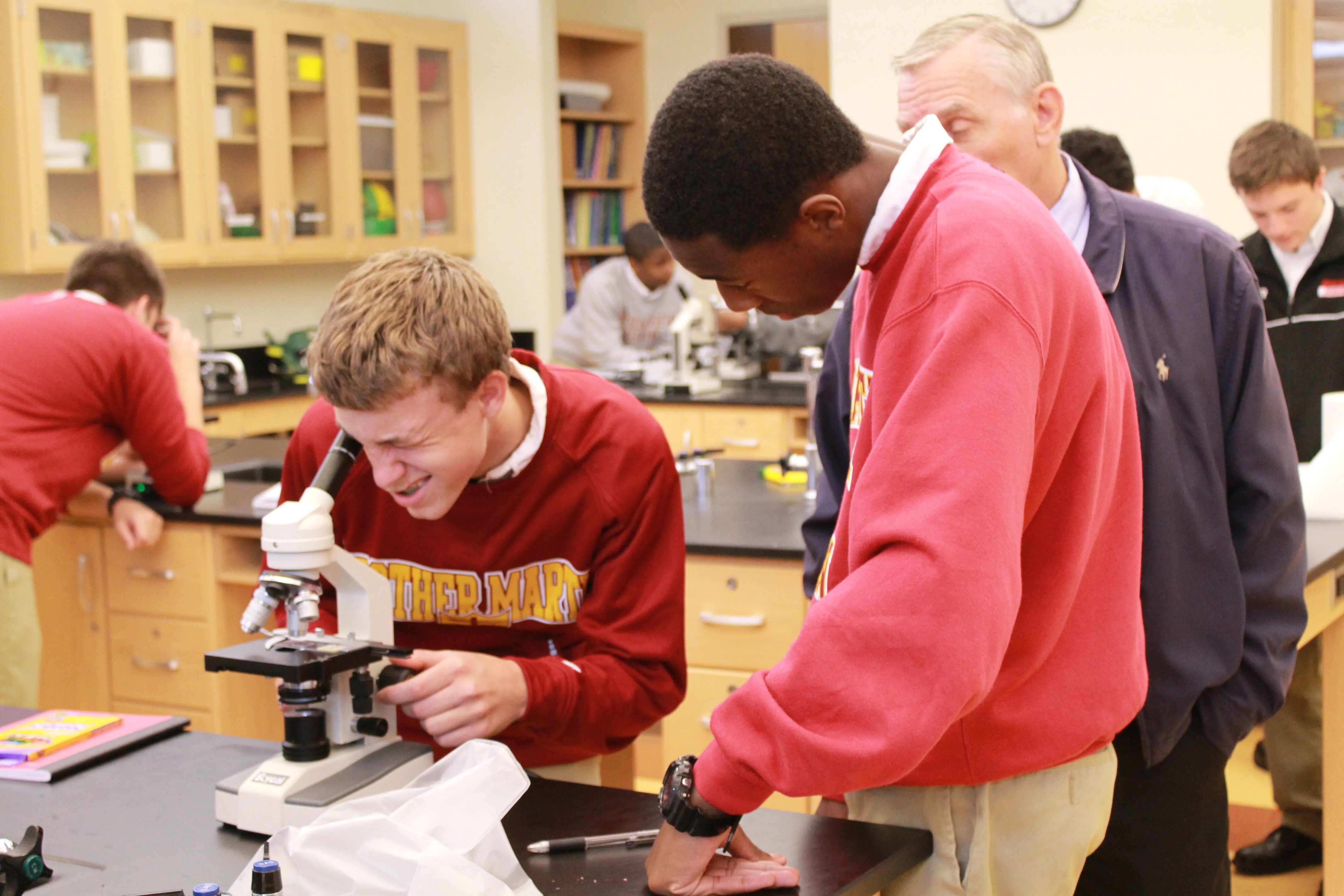 Biology students learned the intricacies of the microscope in their Microscope Lab, knowledge that they will use in labs throughout the school year. Additionally, the 7th Grade Life Science Honors class conducted an experiment using the Scientific Method. Students followed the steps of the Scientific Method and recorded data while testing different solutions for a reaction to occur. Using their data, students were required to report on the experiment’s conclusions.