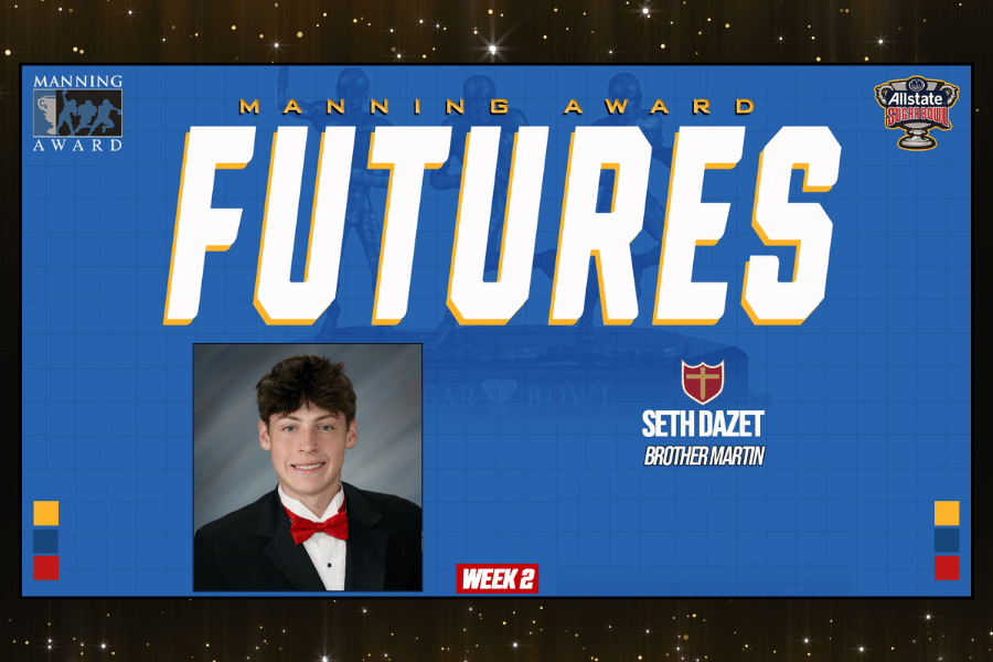 NEW ORLEANS (September 17, 2024) – The Allstate Sugar Bowl has announced this week’s Manning Award Futures – four local high school quarterbacks who turned in outstanding performances on the football field this past weekend. The recognition is entitled “Futures” as these high school stars are potential future candidates for the Manning Award, which recognizes the top collegiate quarterback in the nation on an annual basis. It was created by the Allstate Sugar Bowl in 2004 to honor the college football accomplishments of Archie, Peyton and Eli Manning.