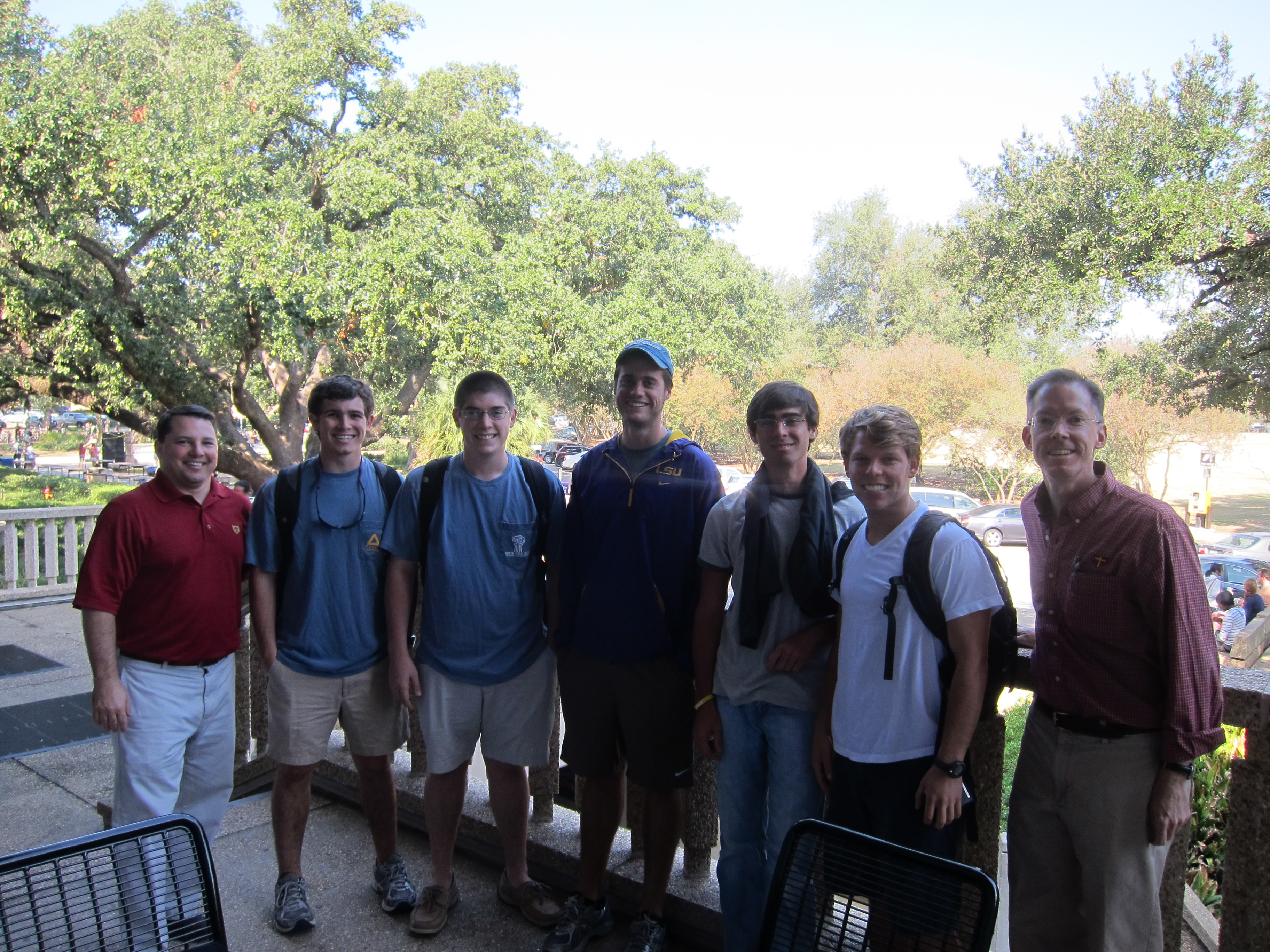On Wednesday, Justin Fleetwood, Asst. Principal for Discipline, Thomas Mavor, Vice Principal for Academics, and Kenny Spellman ’84, Alumni Director, visited LSU’s campus for the first Alumni Day at LSU. The three met with alumni outside of the LSU Student Union. Alumni were updated on current campus activities.