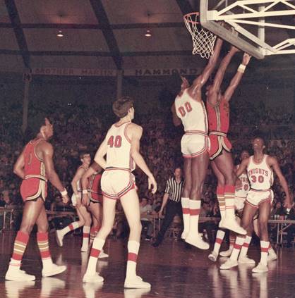 Crusaders winning the championship playoff. The three meetings produced a total difference of seven points between the two teams. The quintets met again in the CYO Tournament,