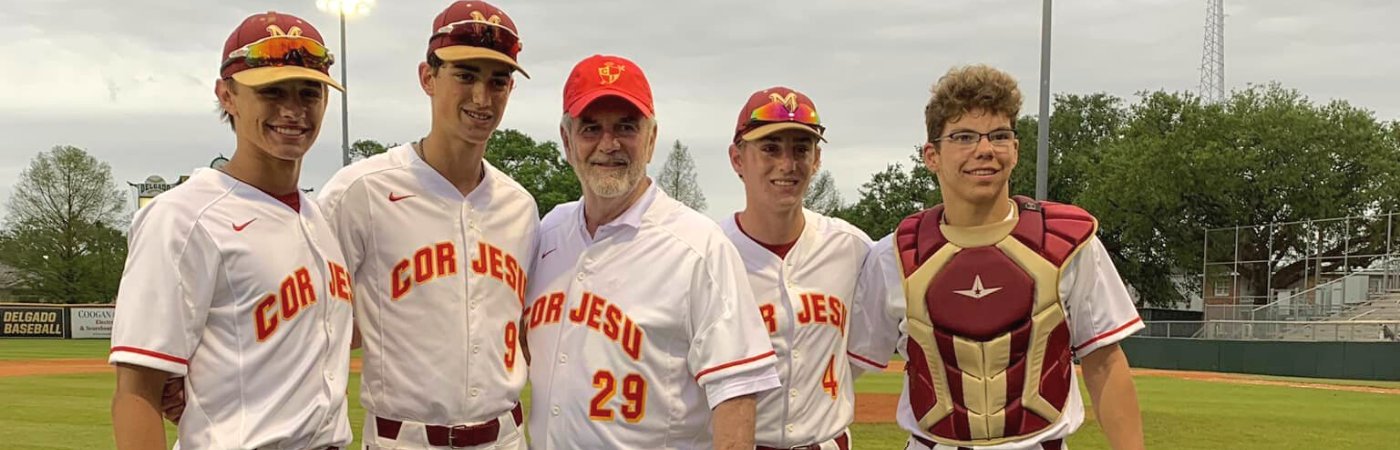 The Brother Martin Baseball Team celebrated their Cor Jesu Throwback Night vs. Rummell in mid-April. Larry Gibbs ’65 CJ, 2021 Alumnus of the Year, threw out the first pitch. Although the game didn’t end the way that we had hoped, it was a joyful celebration.