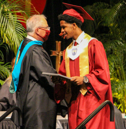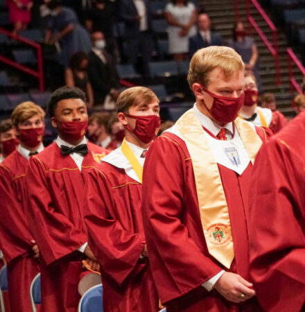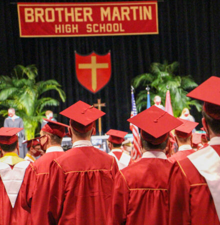 Brother Martin High School held its 52nd commencement exercises on Friday, May 21, 2021, at UNO Lakefront Arena honoring the Class of 2021. The commencement celebrated 152 years of the presence of the Brothers of the Sacred Heart in New Orleans and their mission of educational excellence. President Gregory M. Rando ‘77 and Principal Ryan J. Gallagher ‘00 conferred diplomas to 206 graduates. Special academic awards were also presented to graduates for excellence in specific courses and several graduates were recognized for their service to Brother Martin. Following the distribution of awards and diplomas, Principal Gallagher stated, “Graduates, we now send you out as Ambassadors of good news. May you always draw joy and comfort from your belief in God’s love and your efforts to live it and spread it. And may you always know that you have a home at Brother Martin. Ametur Cor Jesu! Ametur Cor Mariae!”