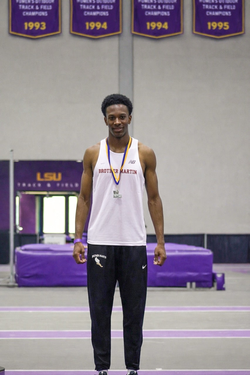 Congratulations to Brother Martin Junior Owen Moller '27 for his 2nd-place finish in the long jump at the Division I LHSAA State Indoor Track and Field Championships on Saturday. Owen extended his school record with a leap of 21' 10 1/4" in a highly contested event. Also competing in the meet and running to an 8th place finish in the 3200 meter run was Senior Anders Maitrejean '26. Congratulations to Owen and Anders!
