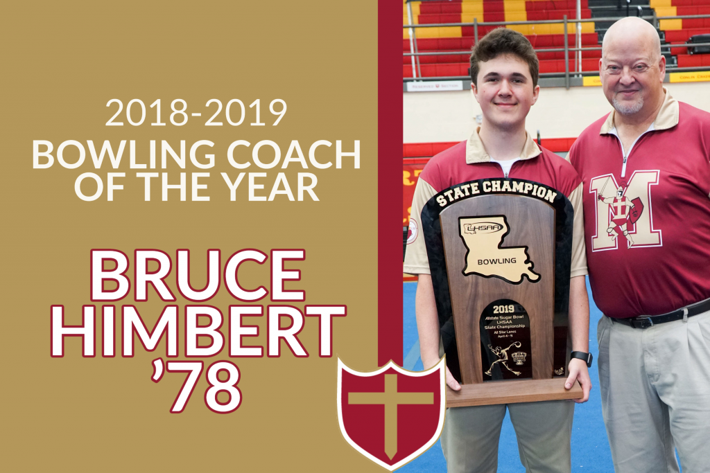 Congratulations to Coach Bruce Himbert '78 for being named the 2018-2019 LHSAA Boys Bowling Coach of the Year! We are so very proud of your hard work, dedication, and support of our Crusader Bowlers. You are the most deserving of this award, Coach Bruce.