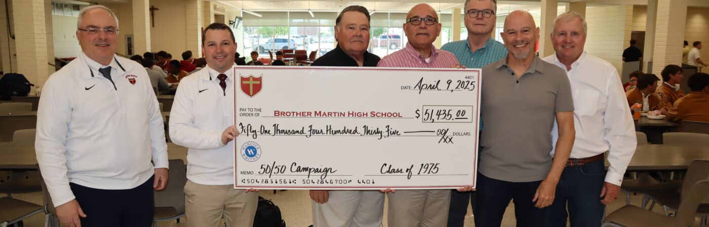 Members of the Class of 1975 gathered to present the school with a check for $51,435.00 after they reached their goal before their 50-year Reunion. Classmates enjoyed lunch in The Benson Mall and were applauded for their efforts after the announcement to students. Later, Director of Advancement Kenny Spellman ’84 and Director of Alumni Relations Chris Heine ’03 led a campus tour.