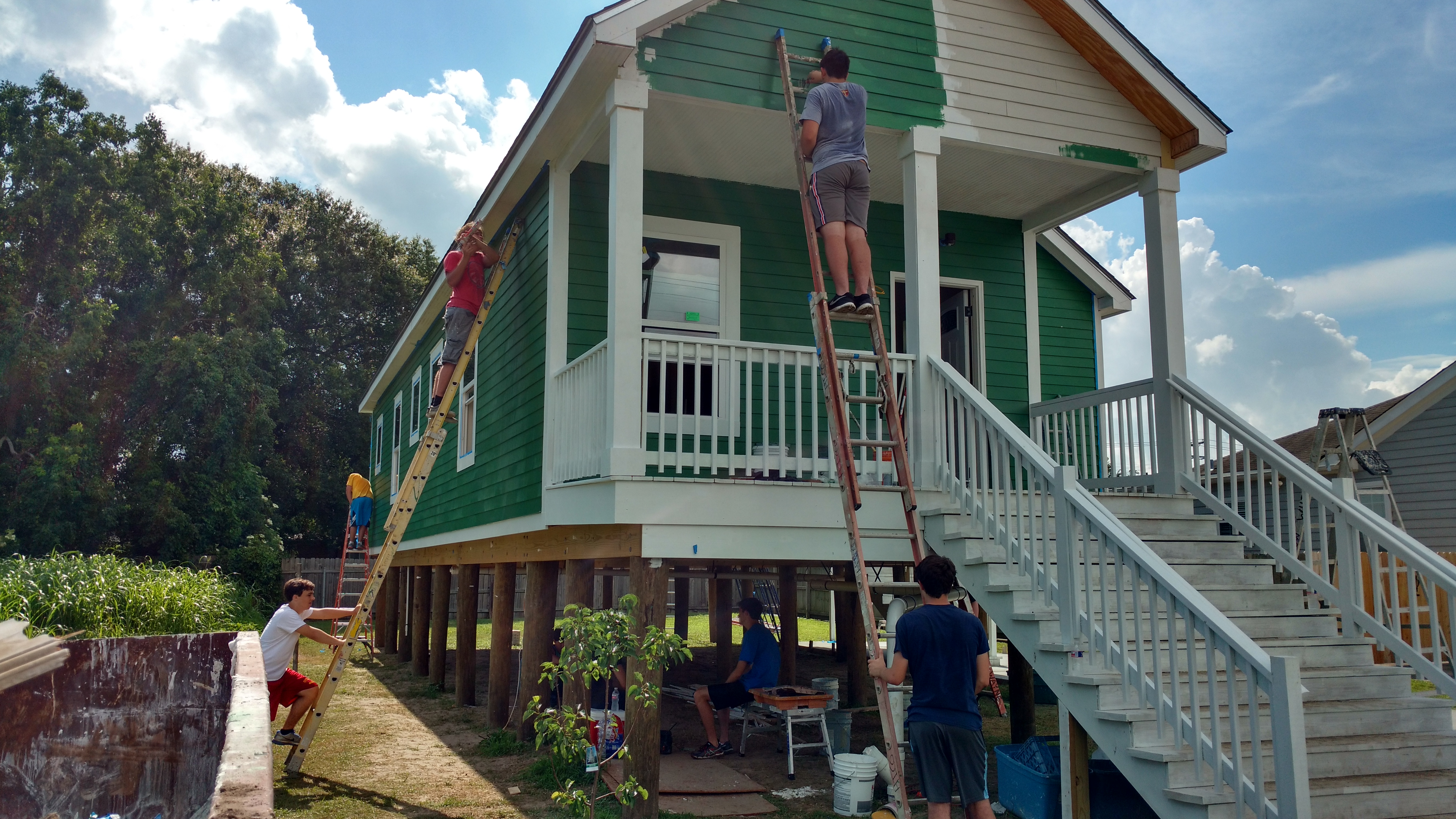 IMG_20160610_093743635_HDRBrother Martin once again partnered with the SBP (formerly the St. Bernard Project) in the neighborhoods of Gentilly and New Orleans East, building homes to replace those destroyed by the levee failures during Hurricane Katrina.  In April, the faculty and staff at Brother Martin engaged in a day of service with SBP sponsored by Campus Ministry. During the second week of June, it was the students’ turn to do service work with the SBP.  Ten rising juniors and seniors worked on one of the houses located at 6029 Vermillion Blvd., which the faculty had previously worked on during the year. The students laid and grouted a tile floor in a bathroom, installed molding, cleaned, and painted the interior and exterior of the home.  Students who participated for the whole week gave 40 hours of service. Additionally, students helped to install a fence at a house that the SBP built two years ago on Tulip St. in New Orleans East.