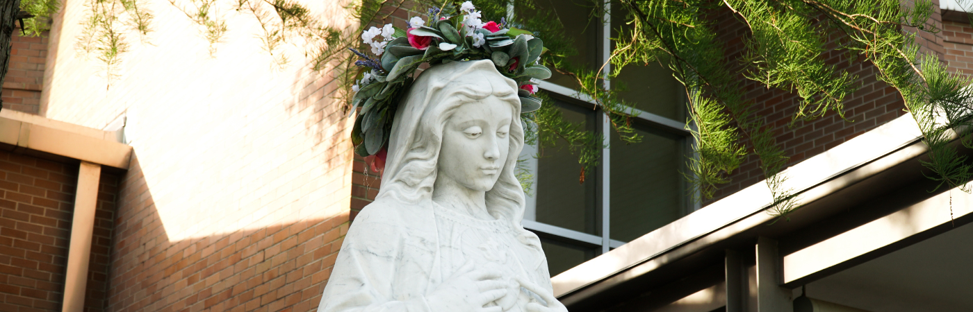 Members of the Brother Martin community gathered in prayer during our liturgy this morning in honor of the Blessed Virgin Mary. Afterward, a May Crowning ceremony was held where Marc Graffeo '22 placed a beautifully interwoven crown of flowers upon a statue of our Mother that resides outside of the Thomas F. and Elaine P. Ridgley Fine Arts and Athletic Center and the Brother Mark Thornton Terrace.