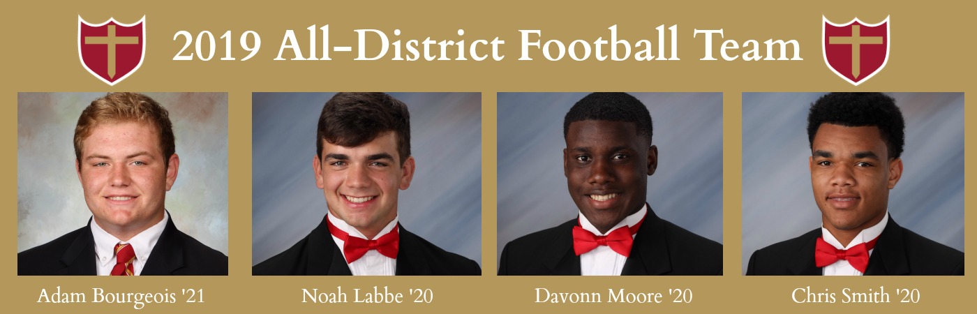 Congratulations to our Brother Martin football players that were selected to the 2019 All-District Team! The following players have been named to the All-District team: Junior Adam Bourgeois as Offensive Lineman and Seniors Noah Labbe as Defensive end, Davonn Moore as Defensive Back, and Chris Smith as Running Back.