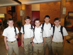 Today, the youngest members of the Brother Martin student body had their first day of school.  The 7th, 8th, & 9th grade students met for Mass in the Branton Chapel and had class level meetings to answer any questions about life on campus.  At the end of the school day, the youngsters got a taste of the Crusader spirit with a pep rally in the Conlin Gym.  The students gathered together to cheer as classmates and learn the fight song.