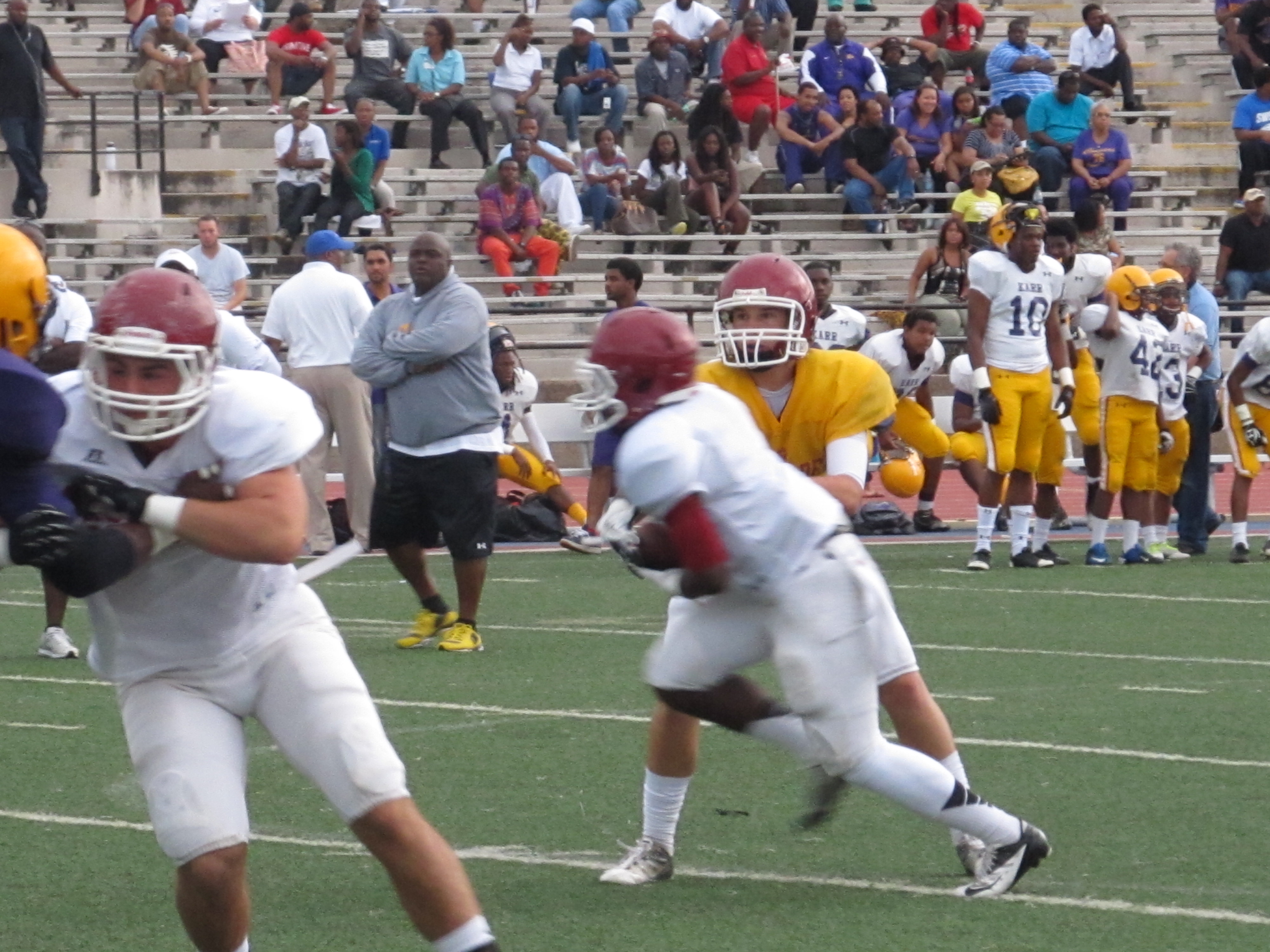 Thursday afternoon the Crusader football program scrimmaged the Cougars from Edna Karr at Tad Gormley Stadium. The offense and defense took turns taking snaps and putting things from practice into real-time situations. Scouts from colleges all over the country were in attendance including the University of Southern California, the University of Alabama, Arizona State University, Louisiana Tech, and LSU.