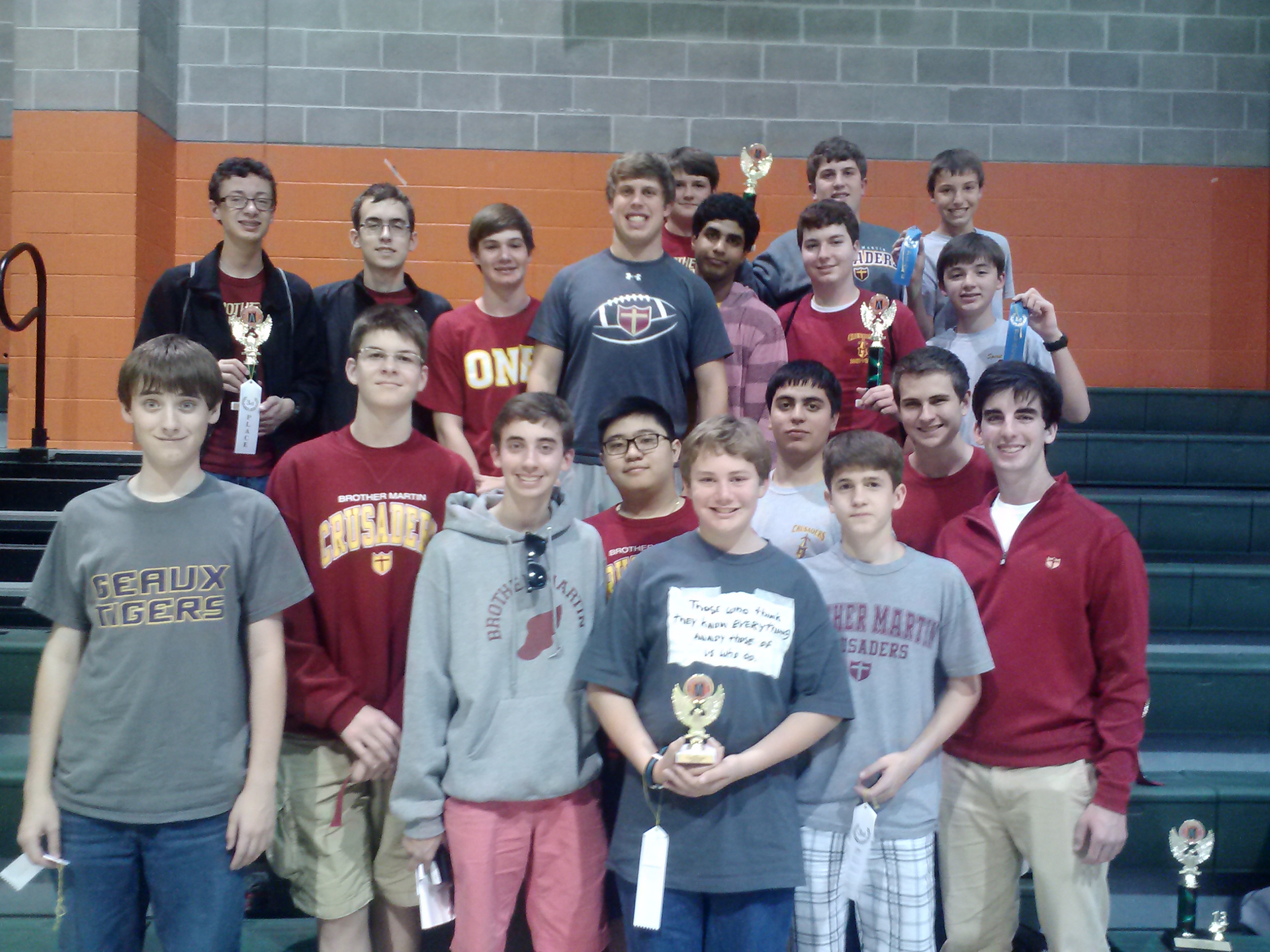 The Brother Martin Mu Alpha Theta Club had an outstanding weekend at the Ben Franklin Mu Alpha Theta Tournament. More than 15 schools competed, and Brother Martin earned 3rd Place in Sweepstakes (the overall award for best school performance).