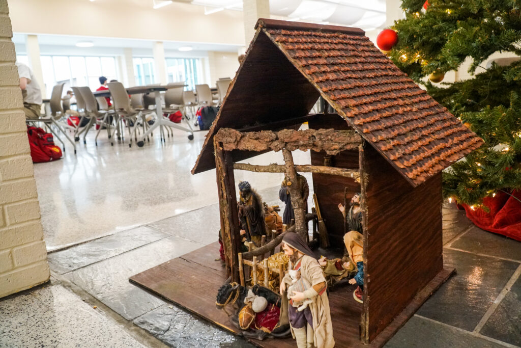 All throughout the Christmas season, our nativity has been present set in front of our Christmas tree within the Tom and Gayle Benson Mall, symbolizing that above all the novelty surrounding the holiday season, Christ comes first.