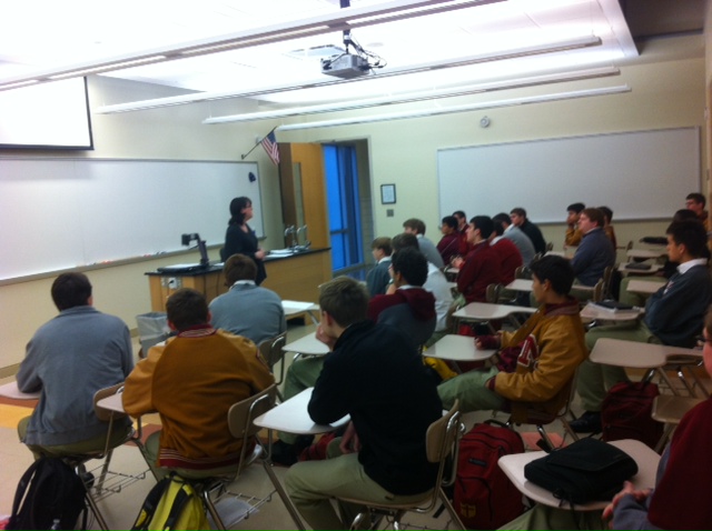 This morning, Mrs. Catherine G. Coats, an engineer with Halliburton, spoke to the Excalibur National Honor Society for Excellence in Science club. Mrs. Coats gave a summary of her engineering career specifically focusing on the curriculum she followed at LSU and the duties in her current job. In addition, she answered questions about employment pathways and discussed environmental issues involved in her work.