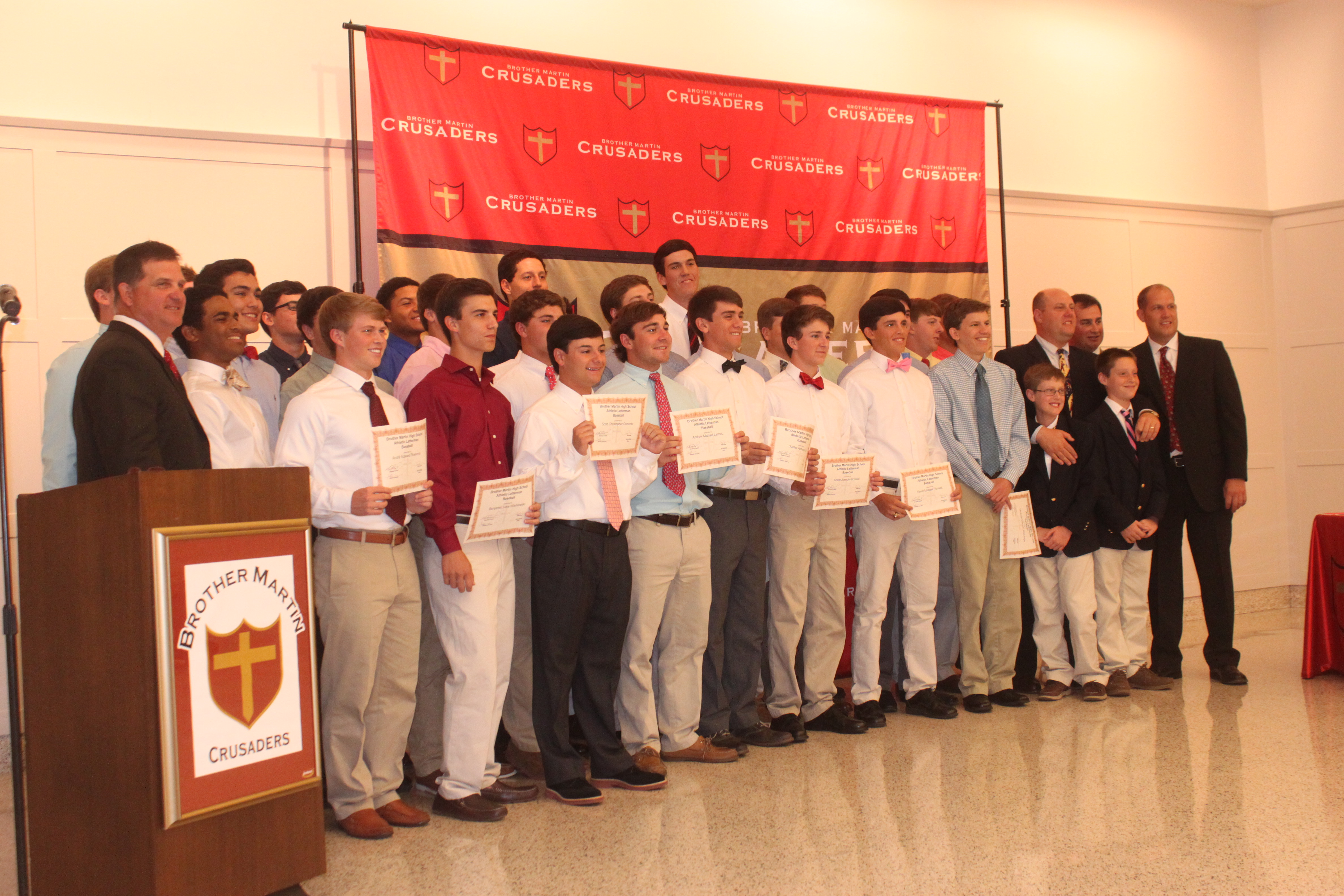 The Athletic Department hosted a convocation last night honoring our baseball program. Head coaches from their respective teams highlighted team accomplishments from the season. Head varsity coach, Mark Wisniewski, addressed the varsity team’s run through the playoffs and trip to Sulphur as a State Semi-Finalist. Those students receiving individual recognition were: