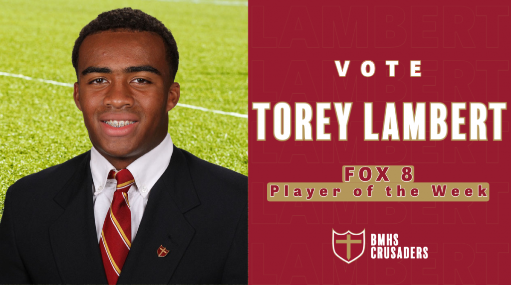 We are pleased to announce that Brother Martin High School’s Torey Lambert '23, #6 RB, is one of three local area High School students recognized in FOX 8’s Player of the Week Contest!